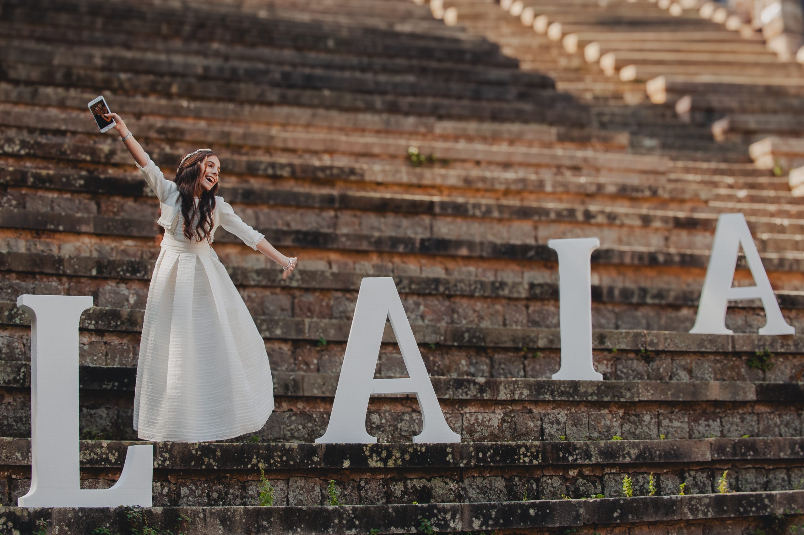 Uno de los detalles más especiales de esta sesión fue que Laia trajo su nombre en letras grandes, algo que hizo el reportaje todavía más personal. Este tipo de pequeños elementos ayudan a crear fotografías únicas y muy especiales para las familias.