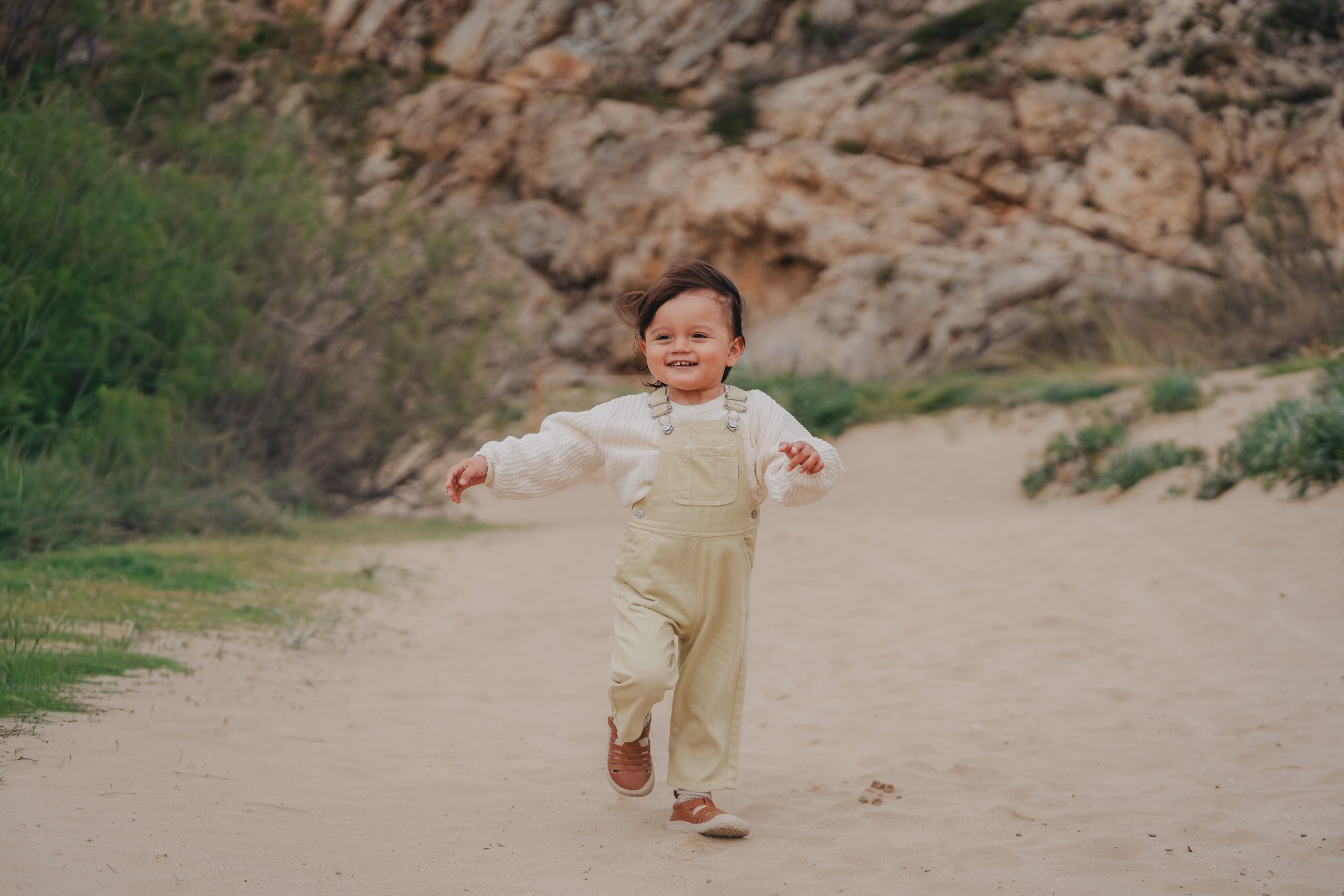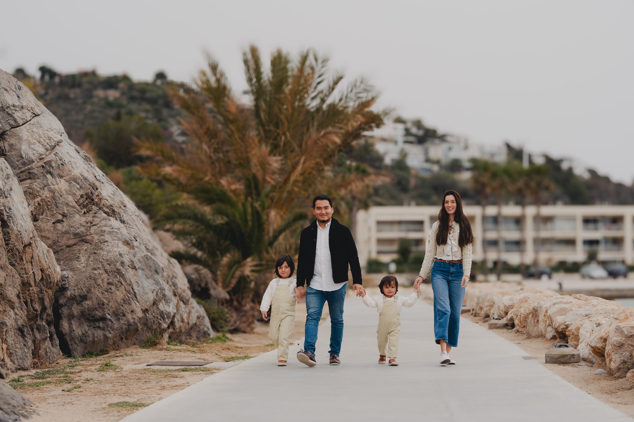 Sesión de fotos familiar en la playa del Garraf en Barcelona durante una tranquila mañana junto al mar. Las sesiones familiares en la playa tienen algo especial: los niños pueden correr por la arena, explorar el entorno y jugar con total libertad mientras las fotografías capturan momentos reales entre padres e hijos.